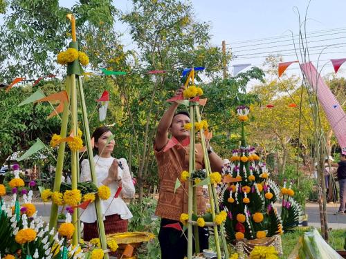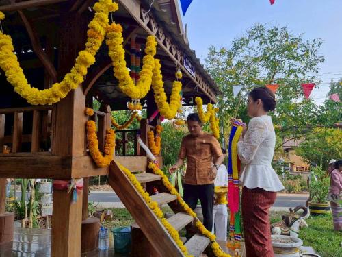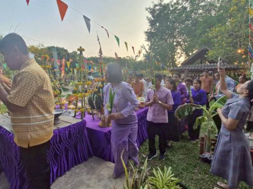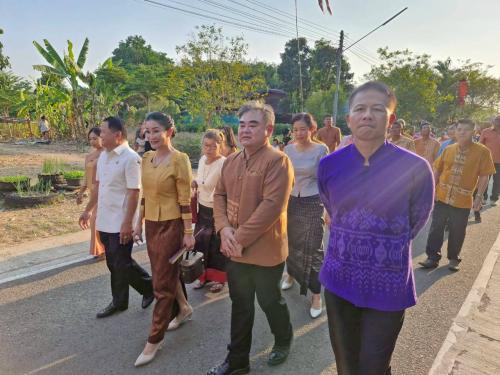 ในการนี้ นายปัฏิมาศ สืบตระกูลทอง พัฒนาการอำเภอบ้านกรวด นำทีมเจ้าหน้าที่พัฒนาชุมชนอำเภอ พร้อมด้วยหัวหน้าส่วนราชการในพื้นที่ เข้าร่วมพิธีอย่างพร้อมเพรียงกัน เพื่อร่วมอนุรักษ์วัฒนธรรมประเพณีท้องถิ่นที่มีเอกลักษณ์ และส่งเสริมการท่องเที่ยวเชิงวิถีชุมชนของอำเภอบ้านกรวดให้เป็นที่รู้จักอย่างแพร่หลาย