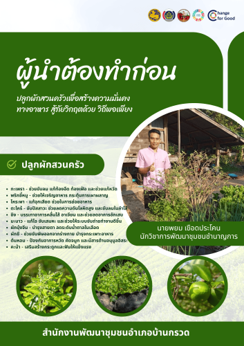 - รณรงค์ให้ทุกครัวเรือนใช้พื้นที่ว่าง "เปลี่ยนสวนสวย เป็นสวนกินได้"